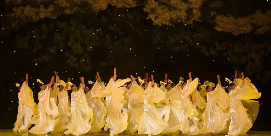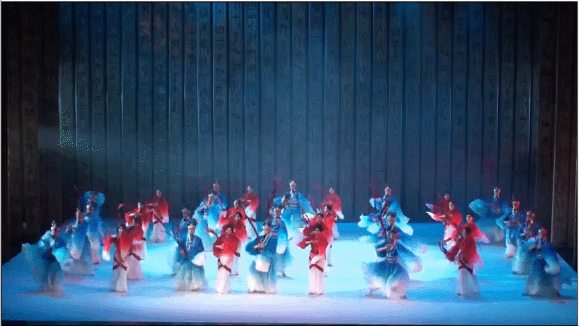最后,所有弟子手捧竹简,在朗朗诗声和辉煌乐声中点燃了整部剧的高潮,将孔子对于大同的期许以及对美好社会的向往表现的淋漓尽致。