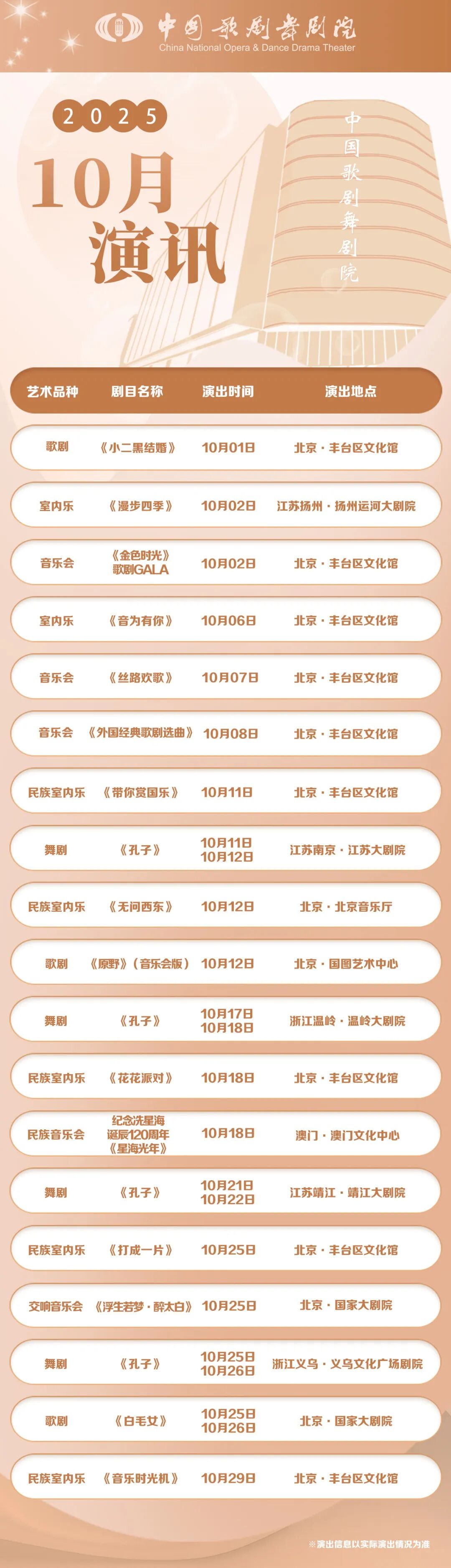 演出·演讯丨中国歌剧舞剧院2025年10月演讯