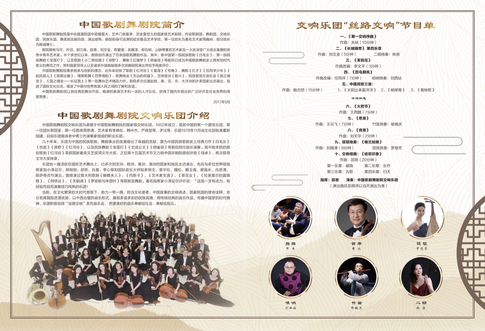 音乐会介绍交响音乐会《丝路交响》,紧扣时代脉搏,以“丝路交响”切入当代主题,以“中国音乐”献礼“一带一路”。用经典作品传播时代精神,用交响音乐讲述中国故事。