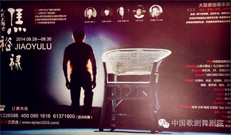 China National Opera and Dance DramaTheatre (CNODDT) Opera Troupe successfully completed the premiere performanceof its original musical Jiao Yulu at Shanghai Gymnasium on the evening ofAugust 28.