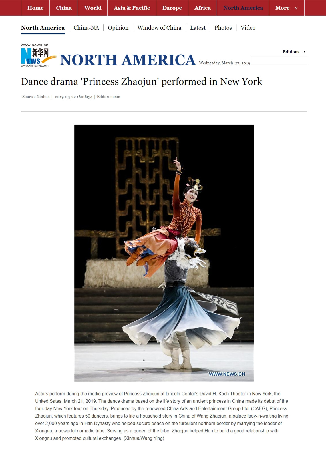 Dance Drama 'Princess Zhaojun' performed in New York
